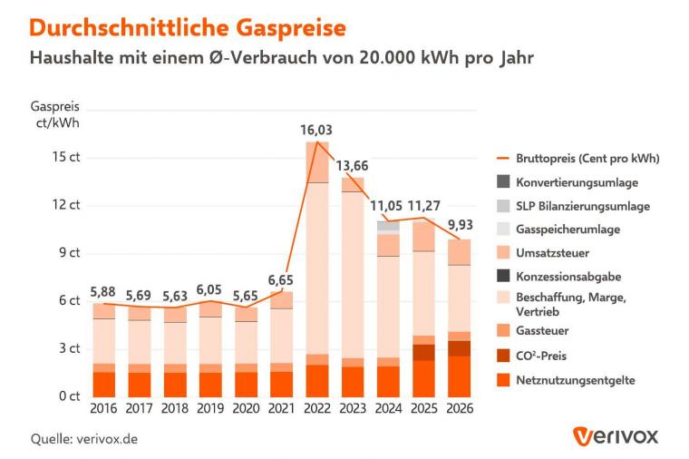 Inzwischen habe sich der Markt etwas beruhigt, so Verivox weiter. Aktuell notiert Erdgas am TTF bei rund 51 Euro/MWh. Damit liegt der Preis jedoch weiterhin etwa 65 Prozent über dem Niveau vor Ausbruch des Konflikts. Die höheren Großhandelspreise schlagen sich nun in den Tarifen für Neukunden nieder. Versorger kalkulieren neue Angebote stärker auf Basis der aktuellen Beschaffungskosten, während Bestandsverträge häufig noch von früher eingekauften Energiemengen profitieren.