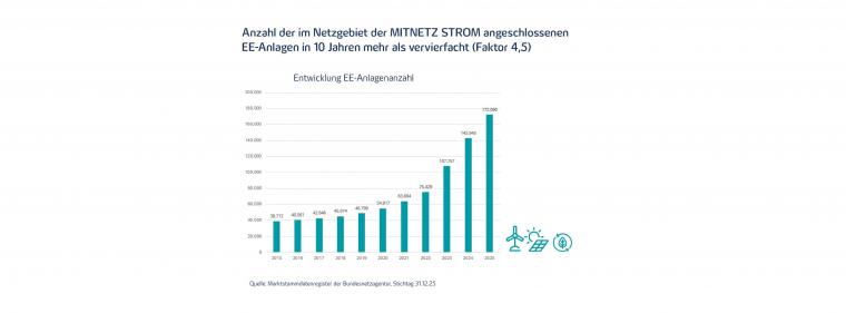 Der ostdeutsche Verteilnetzbetreiber Mitnetz Strom hat 2025 erneut einen deutlichen Zuwachs bei Erneuerbaren-Erzeugungsanlagen