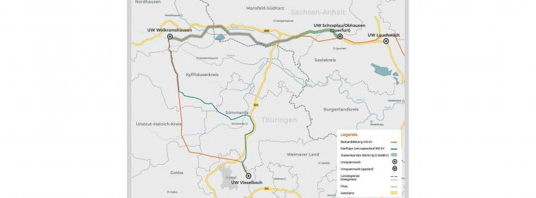 Die neue Leitung werde in zwei Abschnitten – einem Nord- und einem Südabschnitt – geplant und gebaut. Der Bau beginnt in Abschnitt Süd zwischen Nordhausen und Erfurt. Hier werden 180 Masten errichtet. Vor Beginn der eigentlichen Bauarbeiten erfolgten bereits bauvorbereitende Maßnahmen wie Wegebau sowie archäologische und artenschutzfachliche Untersuchungen. Die neue Freileitung verlaufe dabei künftig teilweise anders als die bisherige, insbesondere mit Rücksicht auf Wasservögel an den Erfurter Seen nördlich der Landeshauptstadt. So wird die neue Leitung künftig entlang der A71 nach Norden das Seengebiet umgehen.