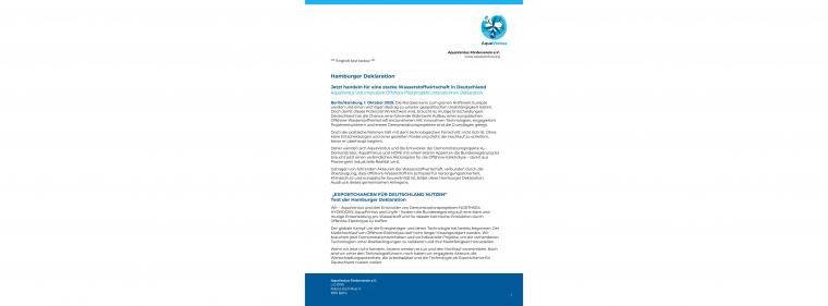 Die „Hamburger Deklaration: Jetzt handeln für eine starke Wasserstoffwirtschaft in Deutschland“ ist über die Internetseite von Aquaventus downloadbar.