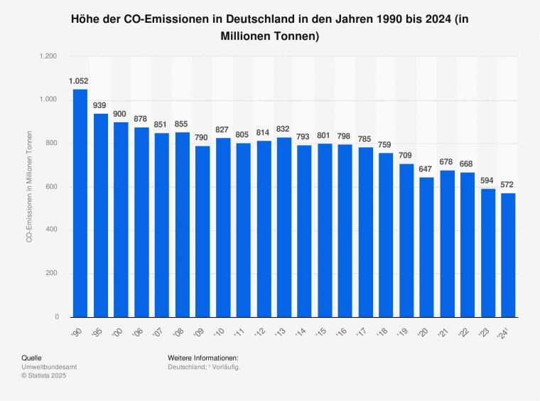 CO2-Emissionen in Deutschland zwischen 1990 und 2024
