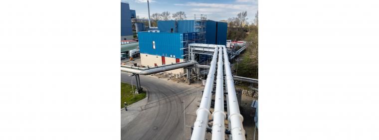 Mehr Grünstrom, weniger Kohle: die PtH-Anlage am Heizkraftwerk Wedel (Schleswig-Holstein) von außen ...