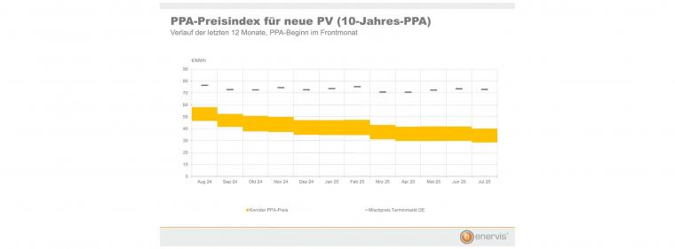PPA) haben sich in Deutschland im Juli − in Abhängigkeit vom Strom-Terminmarkt der Börse EEX − nach unten entwickelt. Das