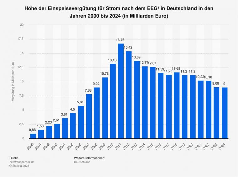 Einspeisevergütung in Milliarden Euro von 2000 bis 2024