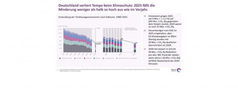 Bundesrepublik im vergangenen Jahr rund 640 Millionen Tonnen CO2. Das entspricht einem Rückgang um 9 Millionen Tonnen oder 1,5 Prozent gegenüber 2024. Die Minderung fiel damit weniger als halb so hoch aus wie im Vorjahr. Gleichwohl hielt Deutschland