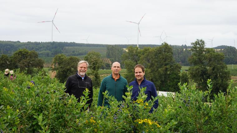 Weitläufige Felder mit 77 Windturbinen: der Windpark „Malleco“ in Chile mit Lutz Kindermann vom Betreiber WPD (Mitte) und