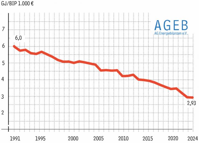 Die Daten zu „Ausgewählte Effizienzindikatoren zur Energiebilanz Deutschland 1990–2024 “ sind als Download auf der Internetseite der Ageb verfügbar.