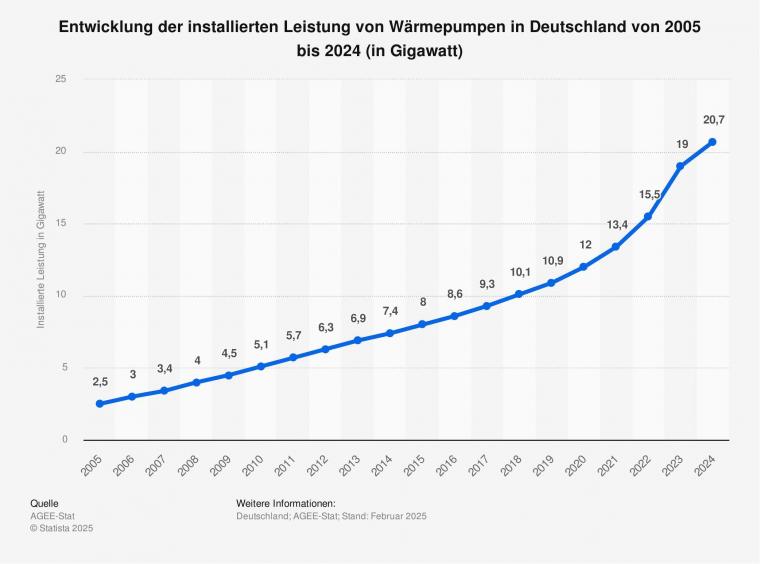 Die installierte Leistung von Wärmepumpen in Deutschland betrug im vergangenen Jahr rund 21 GW. Die Integration von Wärmepumpen ist ein wichtiger Beitrag zur Treibhausgasreduktion und somit zum Klimaschutz im Bausektor, da sie − im Gegensatz zu Gasheizungen − mit Strom aus erneuerbaren Energien betrieben werden können. Vor allem der Anteil von Neubauten mit installierten Wärmepumpen ist in den letzten Jahren stark angestiegen. Die Angaben stammen von der Arbeitsgruppe Erneuerbare Energien-Statistik (AGEE-Stat).