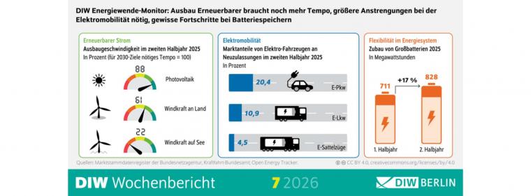 Weitere Details zum aktuellen Energiewende-Monitor 7/2026 stellt das DIW auf seiner Internetseite bereit.
