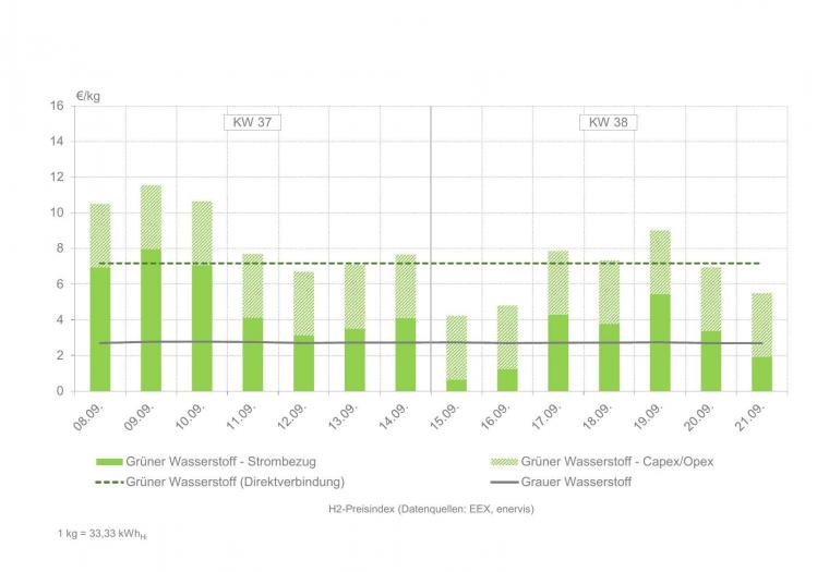 H2-Preisindex für die Kalenderwochen 37 und 38
