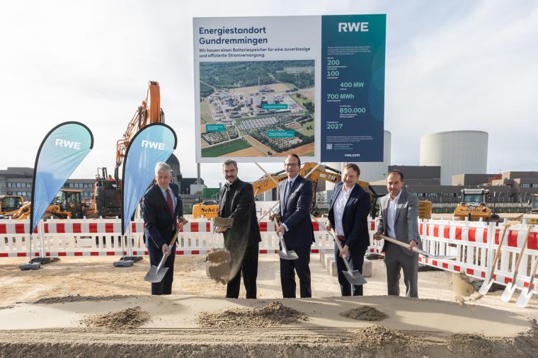 RWE baut am Standort Gundremmingen in Bayern den derzeit größten Batteriespeicher Deutschlands. Der symbolische Spatenstich erfolgte kürzlich im Beisein von Bayerns Ministerpräsident Markus Söder (CSU). Die Anlage soll 400 MW Leistung und 700 MWh Speicherkapazität erreichen und Anfang 2027 in Betrieb gehen. Der Speicher entsteht auf dem Gelände des ehemaligen Kernkraftwerks Gundremmingen. Erst wenige Tage zuvor, am 25. Oktober, wurden die beiden Kühltürme gesprengt. In den kommenden Monaten werden mehr als 200 Container mit rund 850.000 Lithium-Eisenphosphat-Batteriezellen installiert.