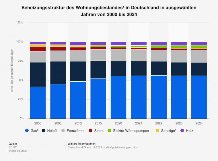Heizungsstruktur in Deutschland zwischen 2000 und 2024