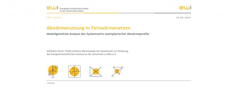 Die Studie „Abwärmenutzung in Fernwärmenetzen – Modellgestützte Analyse des Systemwerts exemplarischer Abwärmeprofile“ ist im Rahmen der „Förderinitiative Wärmewende“ der Gesellschaft zur Förderung des Energiewirtschaftlichen Instituts an der Universität zu Köln entstanden.