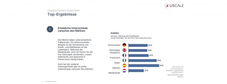 Laut Axel Sprenger, dem Gründer und Geschäftsführer von Uscale, sei es noch unklar, welche Bezahlmethode sich langfristig durchsetzen wird. Entscheidend seien die kulturellen Unterschiede und die technische Leistungsfähigkeit. „Anbieter von Ladestrom müssen die Vorlieben der Nutzer genau kennen und ihre Angebote entsprechend gestalten, um erfolgreich zu sein“, so Sprenger. Die Studie zeige auf, dass es weiterhin kein einheitliches europäisches Verhalten beim Bezahlen an Ladesäulen gibt. Vielmehr wird es auch in Zukunft eine Vielzahl an Bezahlsystemen geben, die je nach Land und individuellen Bedürfnissen der Nutzer eine Rolle spielen.