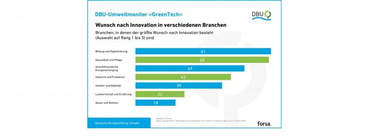 Wunsch der Deutschen nach mehr Innovation nach Bereichen.