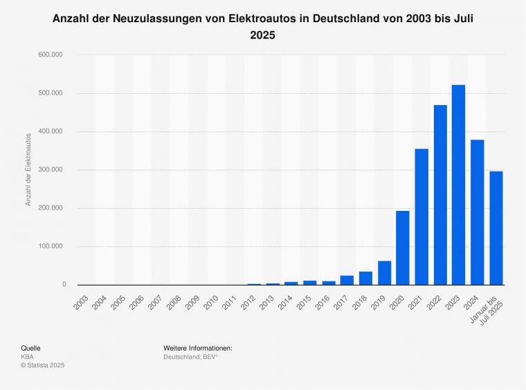 Vorjahreszeitraum war dies ein Anstieg um gut 38 Prozent, wie das Kraftfahrtbundesamt (KBA) erklärt. Das Jahr 2024 sah in Deutschland etwa 380.600 Neuzulassungen von E-Autos.