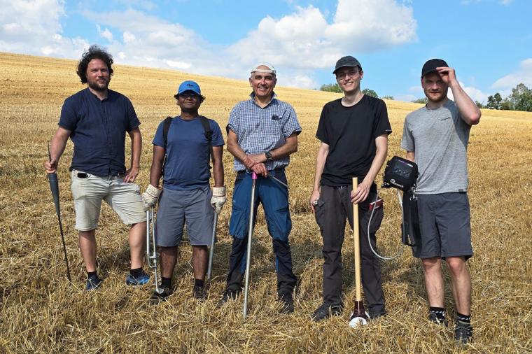 Forschende des Geozentrums Nordbayern und des Fraunhofer IEG Aachen suchen in Nordbayern nach natürlichem Wasserstoff. V.l.: