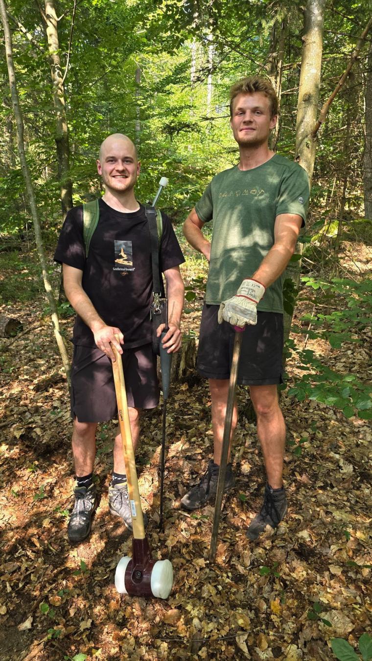 Mit Hammer und Sonde im Einsatz: Felix Gsell (r.) und Julius Liebermann