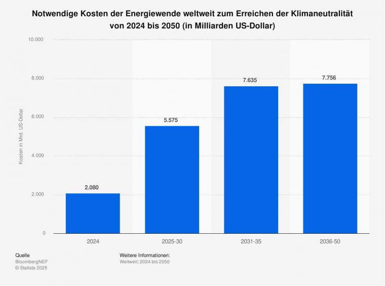 Global erreichten die Investitionen in die Energiewende 2024 mit rund 2,1 Billionen US-Dollar einen neuen Rekordwert. Um das Netto-Null-Ziel bis 2050 zu erreichen, müssten die jährlichen Investitionen in den kommenden Jahren jedoch verdreifacht werden. Die Berechnungen stammen aus dem Report „Energy Transition Investment Trends 2025 “.