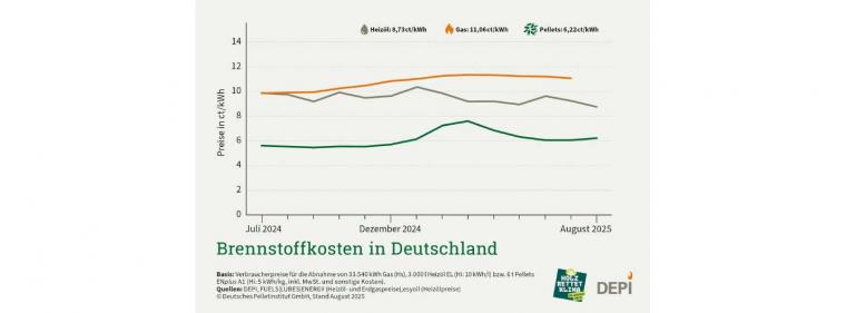 Entwicklung der Brennstoffkosten in Deutschland von Juli 2024 bis August 2025