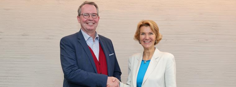 Der Aufsichtsratsvorsitzende Harald Baal (links) gratuliert Alexandra Genten zu ihrer Benennung
