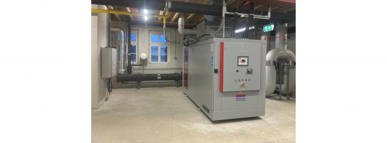 Das Blockheizkraftwerk sowie der Brennwert-Wärmetauscher für das Alanbrooke Quartier