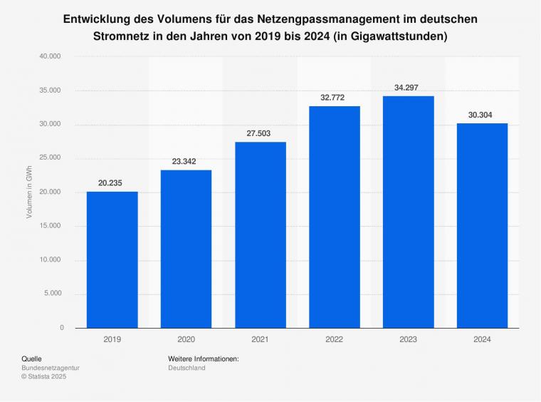 Im Jahr 2024 umfassten die Netzengpassmanagementmaßnahmen im deutschen Stromnetz rund 30.300 Gigawattstunden (30,3 Milliarden kWh). Das sind etwa 4.000 Gigawattstunden (4 Milliarden kWh) weniger als im Vorjahr. Die Netzbetreiber sind dazu verpflichtet, Maßnahmen zur Aufrechterhaltung der Sicherheit und Zuverlässigkeit des Stromversorgungssystems zu ergreifen. Zu den Instrumenten des Netzengpassmanagements zählt unter anderem das Redispatch.