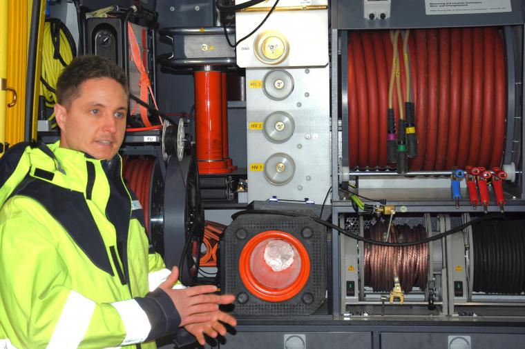 Alexander Lacher am Kabeldiagnose-Fahrzeug.