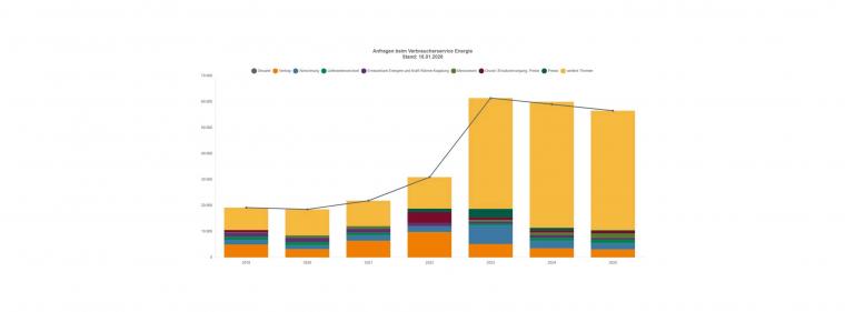 2024 ging die Zahl leicht auf knapp 59.000 zurück. 2025 lagen die Eingänge mit rund 57.000 erneut etwas niedriger, blieben aber deutlich über dem Niveau vor 2022. Inhaltlich dominierten über alle Jahre hinweg Fragen zu Energielieferverträgen, Preisen und Abrechnungen.