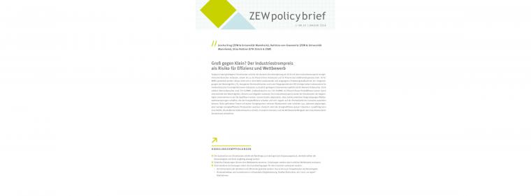 Analyse „Groß gegen Klein? Der Industriestrompreis als Risiko für Effizienz und Wettbewerb“ im ZEW policy Brief Nr. 03