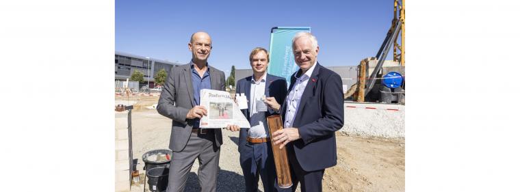 Bei der Grundsteinlegung (von links): Norbert Schachtner (Nickl Architekten Deutschland GmbH) sowie die Professoren Daniel