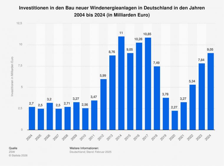 Investitionen in Windenergie in Deutschland 2004 bis 2024