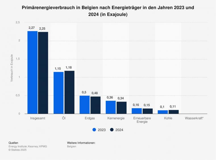 Primärenergieverbrauch in Belgien 2023 und 2024