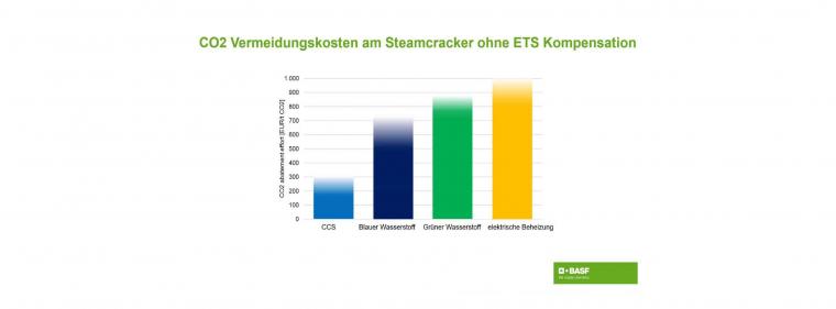 Kostenvergleich der CO2-Vermeidung am Dampfcracker bei BASF.